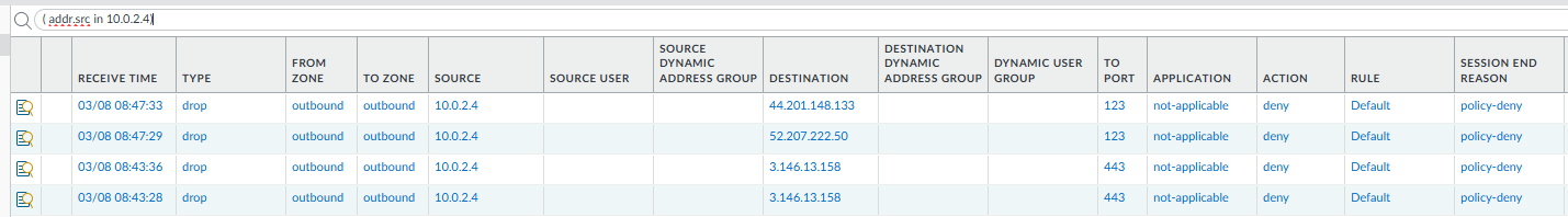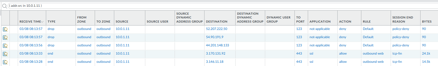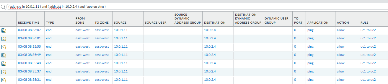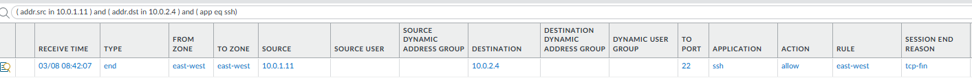 With the routing and policies in place, all East-West and Outbound traffic should now hit the Palo Alto sub-interfaces.